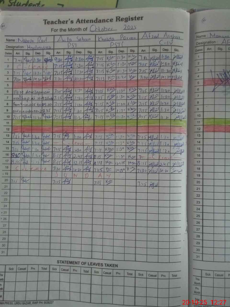 | Leave | Duty | Absent | Maternity | Medical | Ex- Pak |
