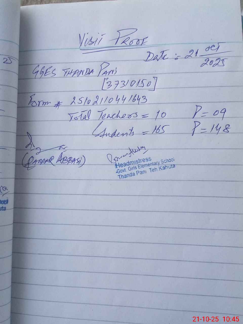 | EMIS Code: 37310150 | Name of School: GGES THANDA PANI | |||