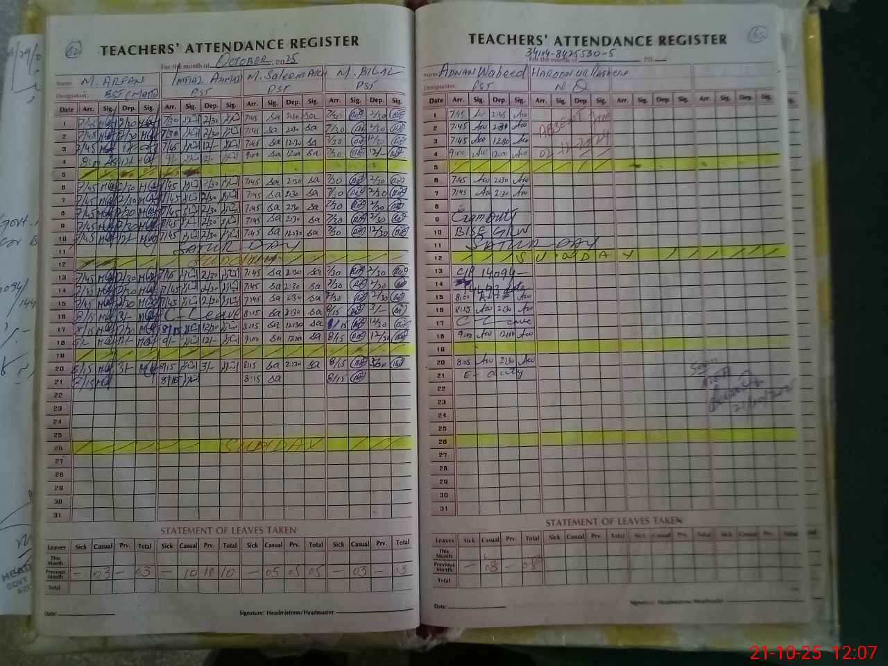 | 34**** | Hr**** UrRa**** | NQ | Regular | 0 | 0 | 0 | 0 | 0 | 0 | 0 | 0 | 0 | Absent (Un-Authorized) |