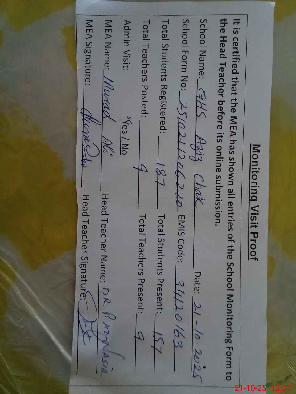| EMIS Code: 34120163 | Name of School: GHS AZIZ CHAK | |||