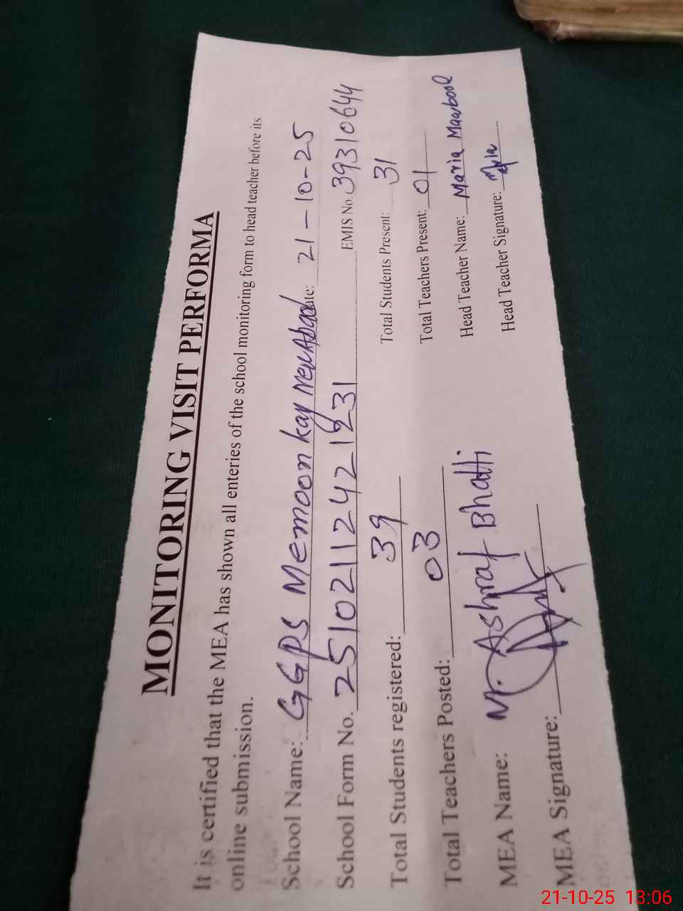 | EMIS Code: 39310644 | Name of School: GGPS MAHMOONKAY NAO-ABAD | |||