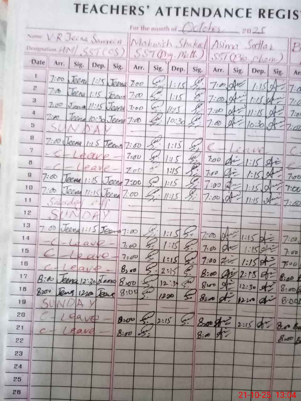 | 33**** | Ta**** Az**** | JC | Regular | 0 | 0 | 0 | 0 | 0 | 0 | 0 | 0 | 0 | Absent (Un-Authorized) |