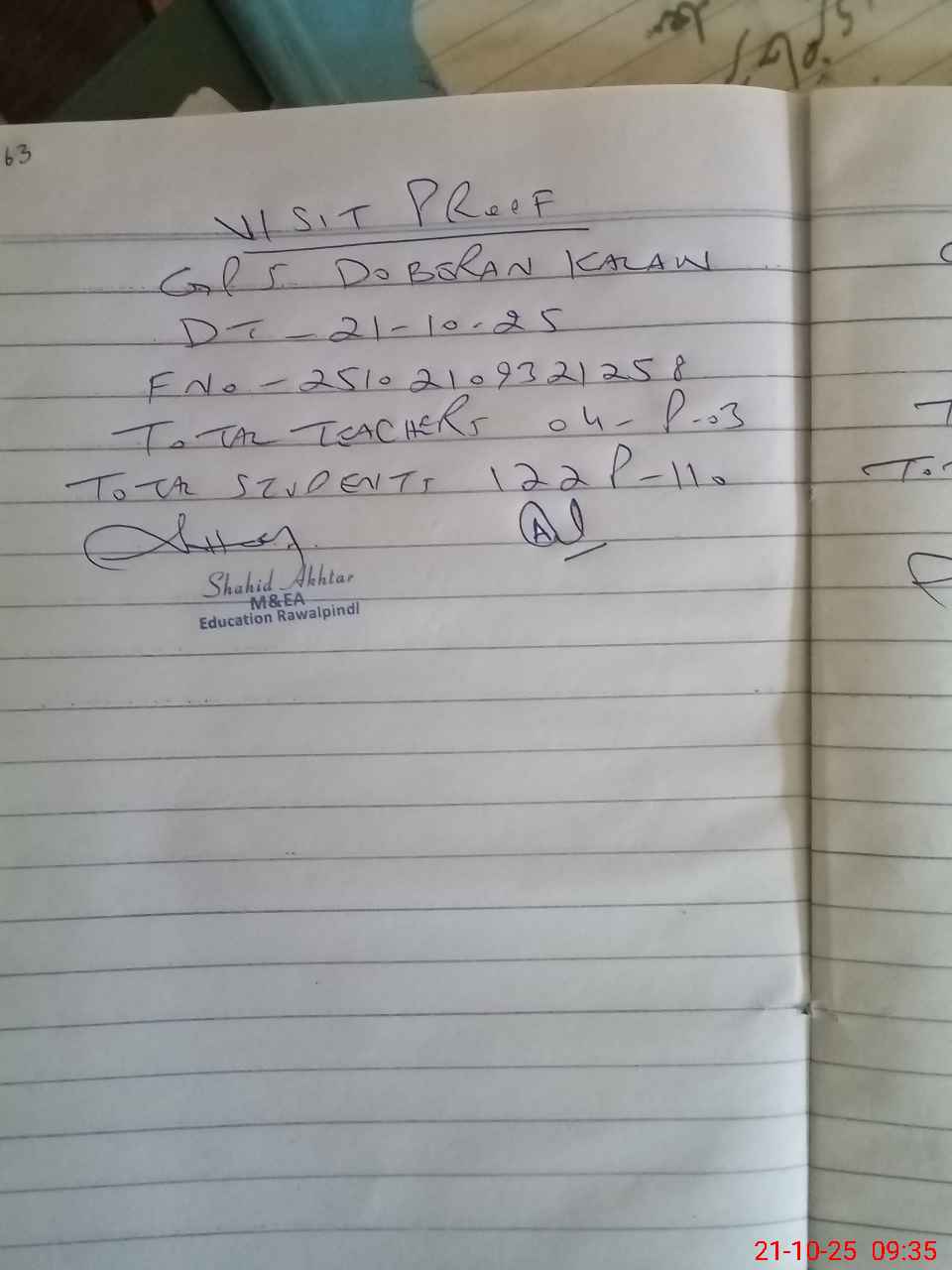 | Attendance Register | Head Teacher | MEA with School | Visit Proof |
