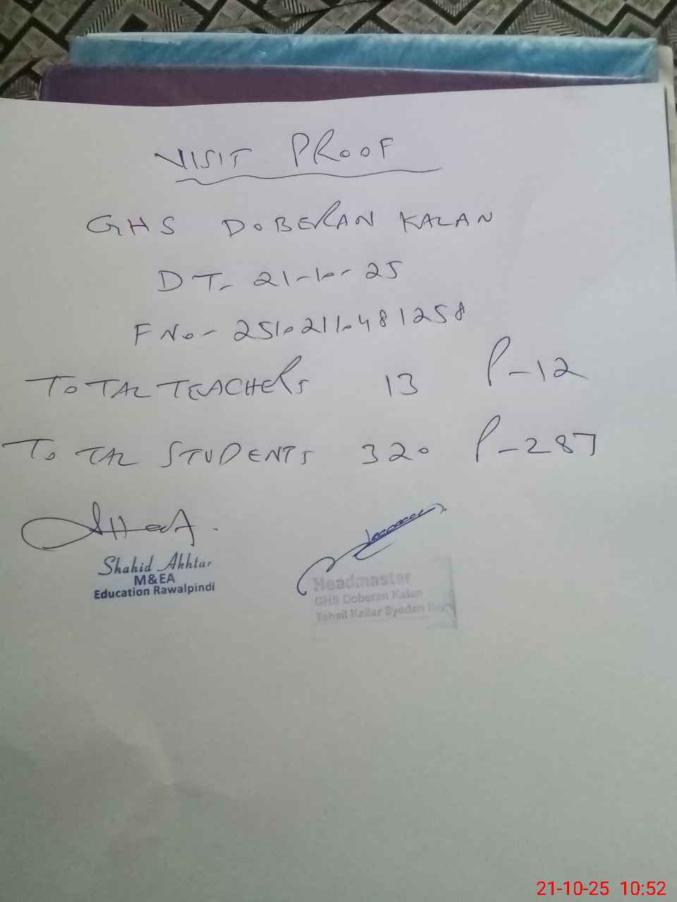| EMIS Code: 37370024 | Name of School: GHS DOBERAN KALAN | |||