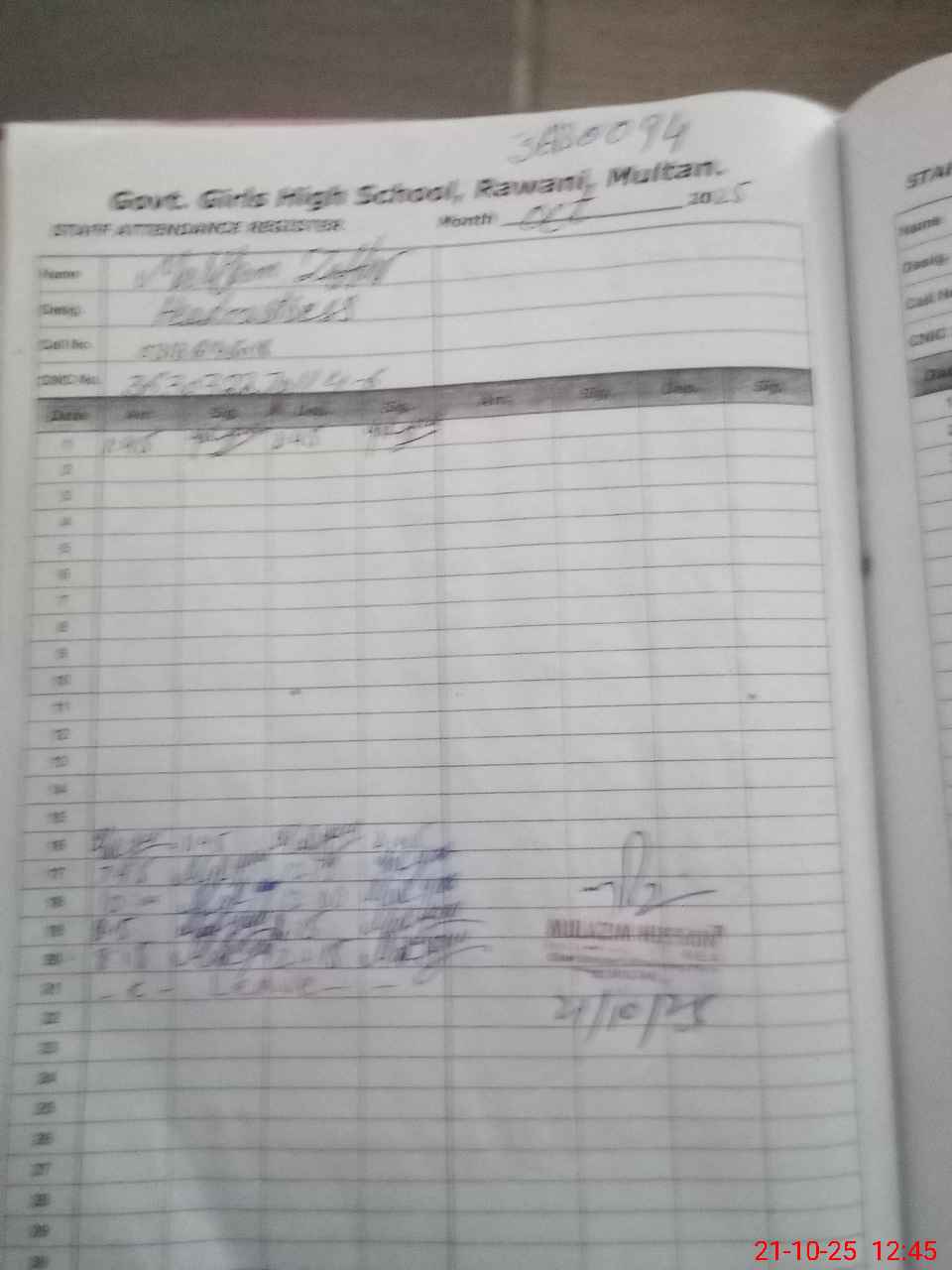 | EMIS Code: 36130094 | Name of School: GGHS RAWANI MULTAN | |||