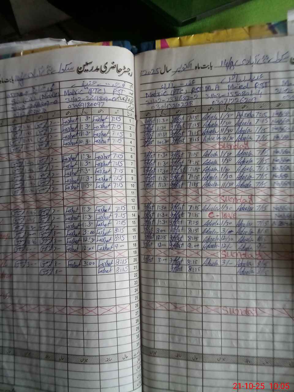| Name: Ad**** Ri**** Designation: (School Headmaster's/Headmistress's) PST Phone/Cell Number: 03**** |