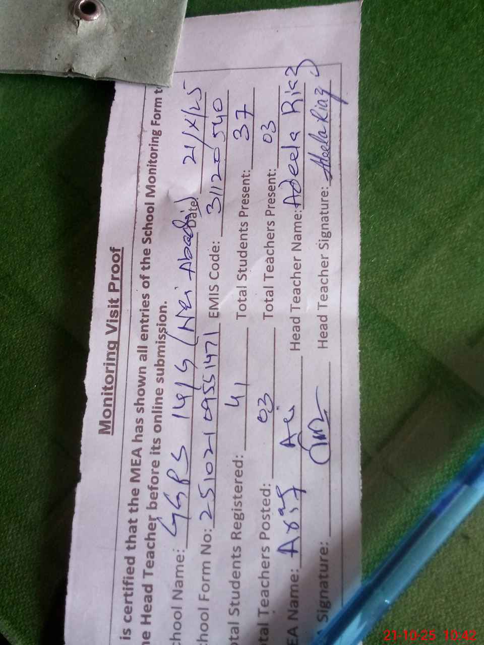| EMIS Code: 31120540 | Name of School: GGPS NAI ABADI 14/G | |||