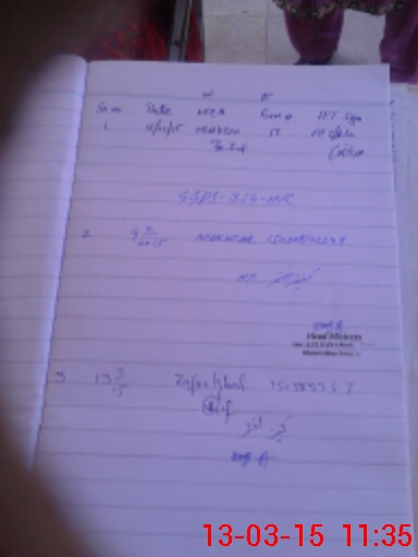 | Monitoring Date: 13-03-2015 | Start Time: 13-03-2015 11:18 AM | End Time: 13-03-2015 11:36 AM | Name of MEA: Za**** Iq**** BN**** | |