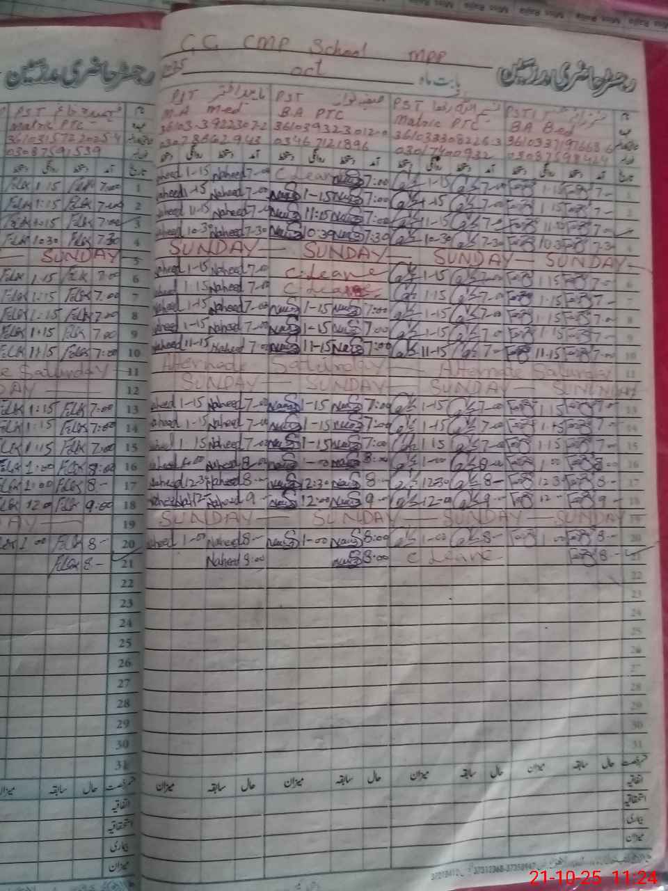 | CNIC | Full Name | Designation | R/C | Absence During Last Calender Month |
