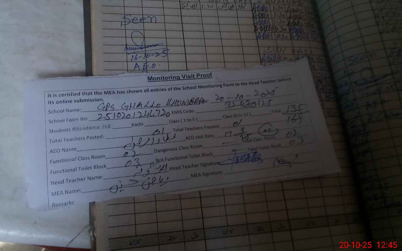 | EMIS Code: 32430125 | Name of School: GPS GHALLO KHUMBRA | |||