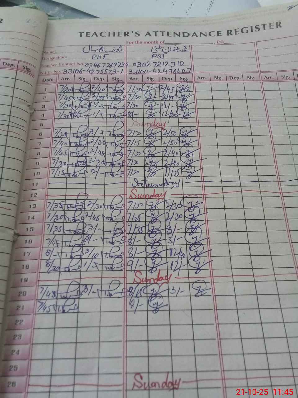| Name: RA**** IQ**** Designation: (School Headmaster's/Headmistress's) PST Phone/Cell Number: 03**** |