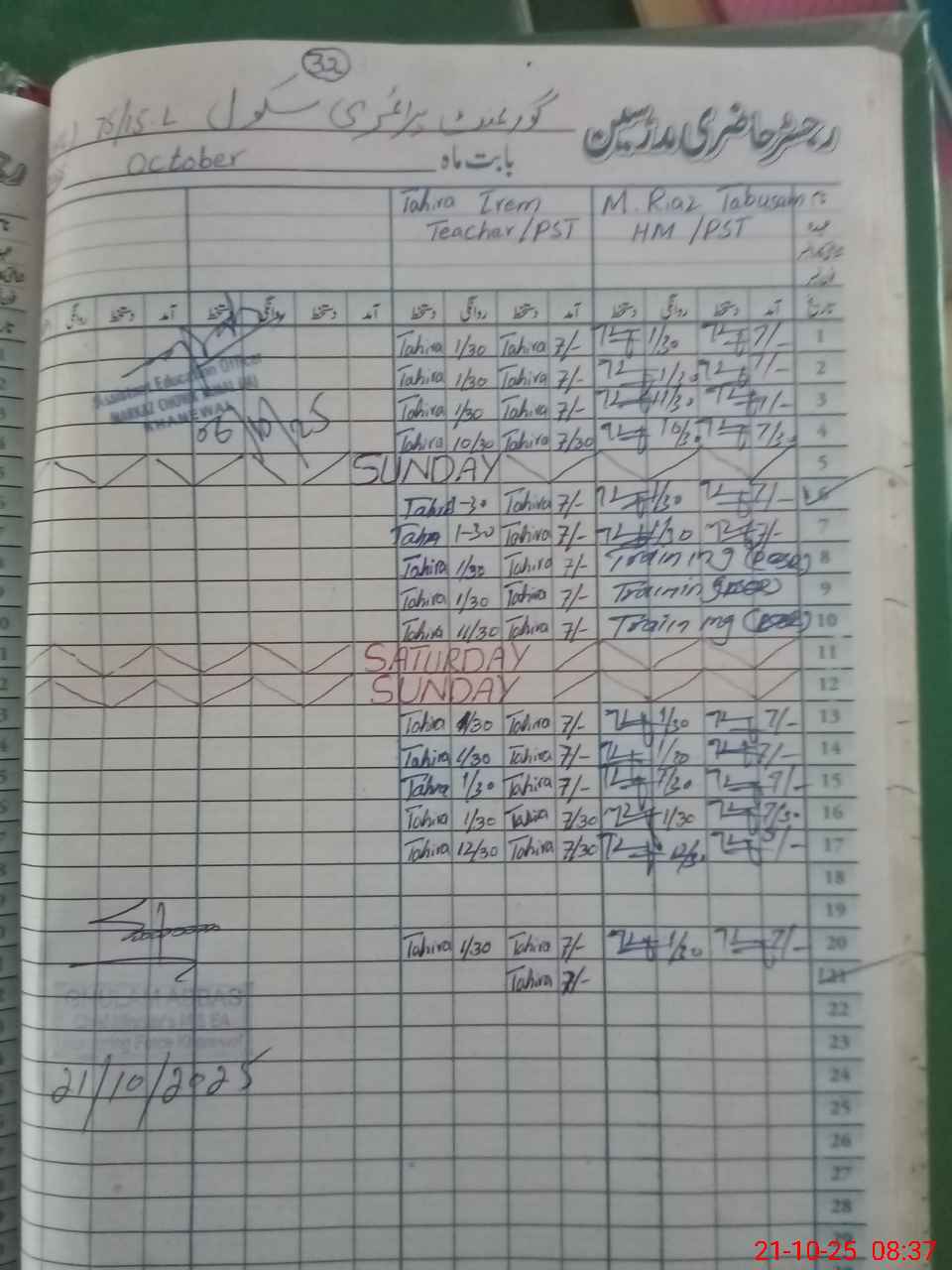 | Name: MRI**** TA**** Designation: (School Headmaster's/Headmistress's) PST Phone/Cell Number: 03**** |