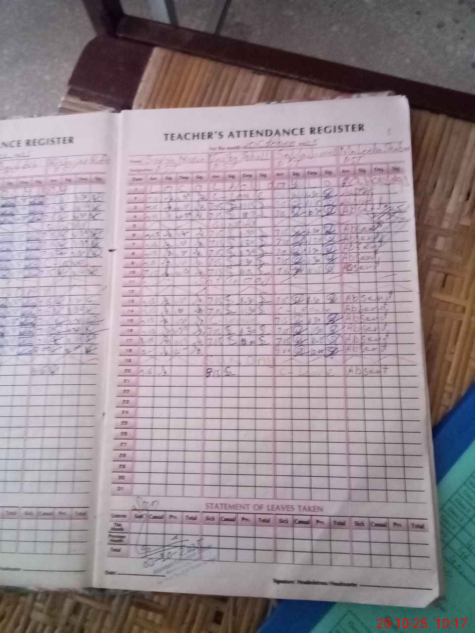 | Leave | Duty | Absent | Maternity | Medical | Ex- Pak |
