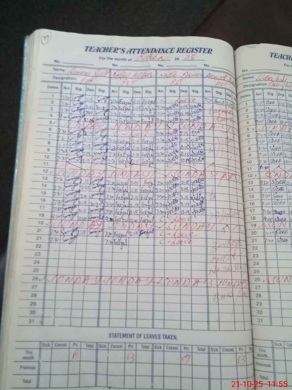| Leave | Duty | Absent | Maternity | Medical | Ex- Pak |