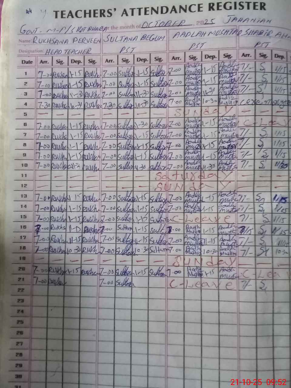 | Name: RU**** PE**** Designation: (School Headmaster's/Headmistress's) PST Phone/Cell Number: 03**** |