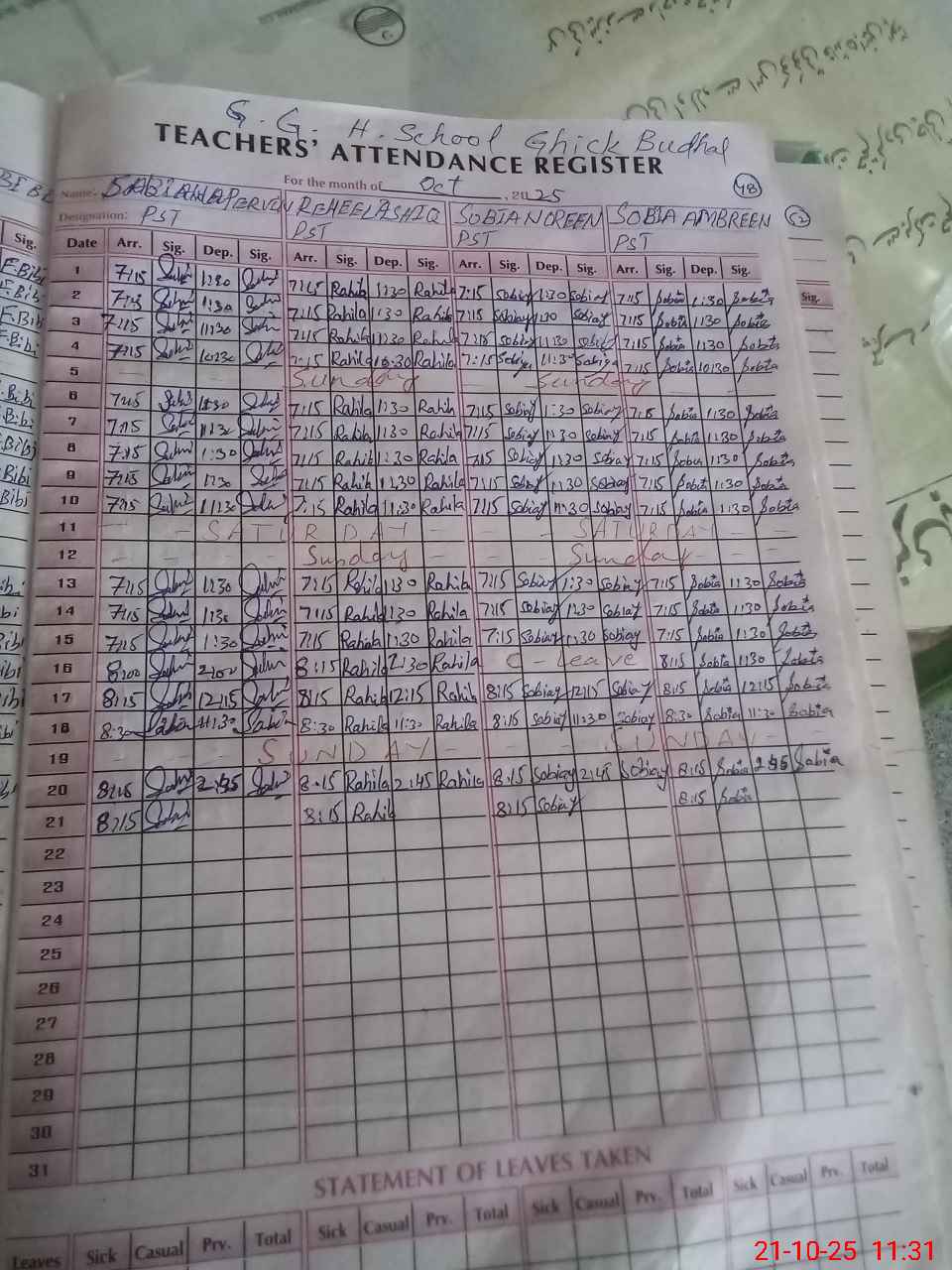 | 37**** | Uz**** Ya**** | EST | Regular | 0 | 0 | 0 | 0 | 0 | 0 | 0 | 0 | 0 | Maternity |
