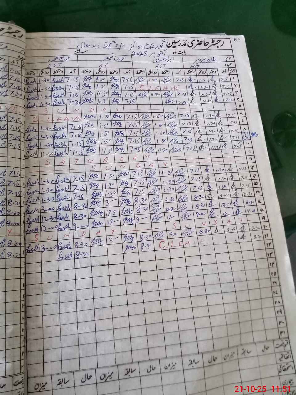 | CNIC | Full Name | Designation | R/C | Absence During Last Calender Month |