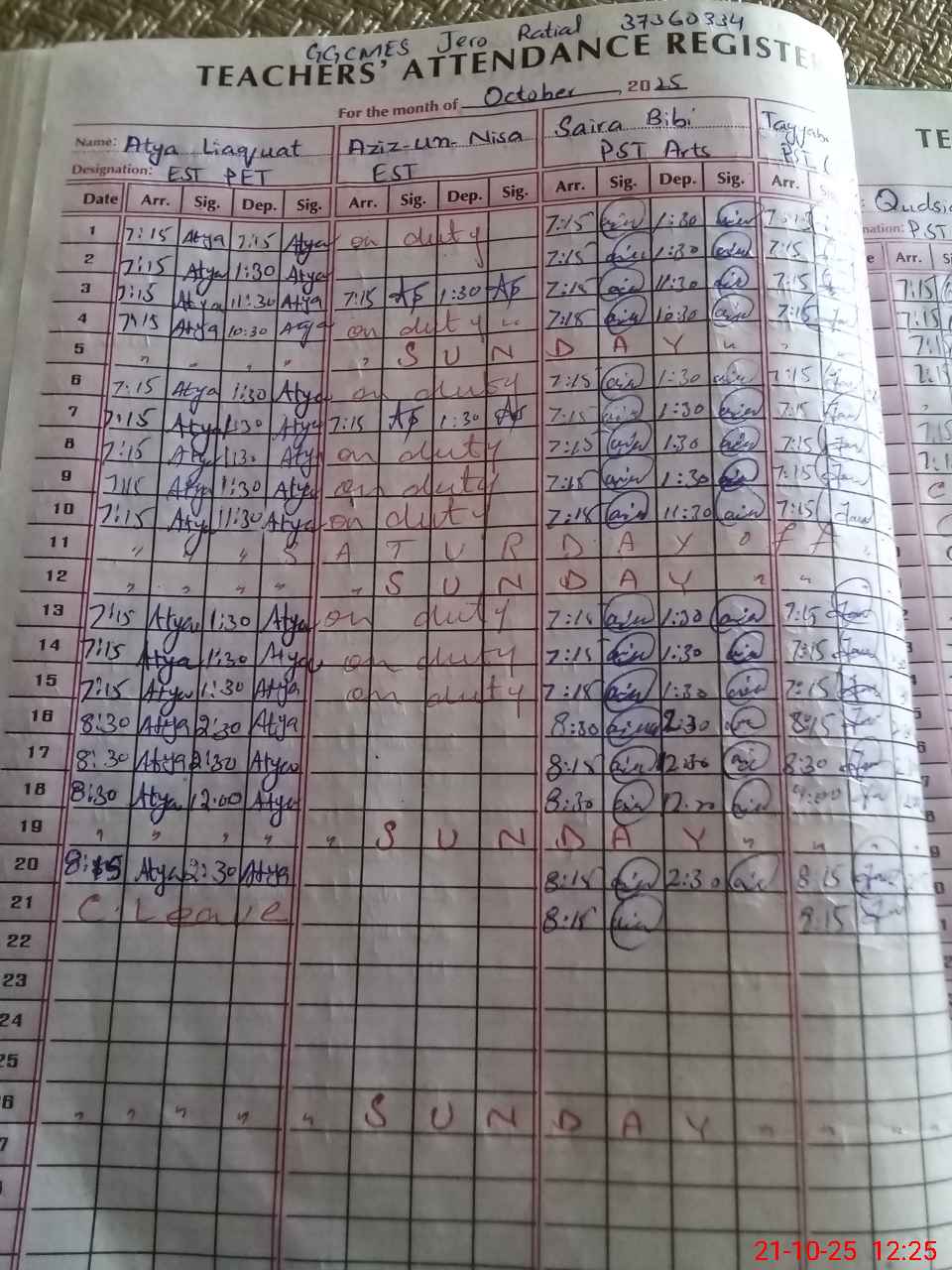 | CNIC | Full Name | Designation | R/C | Absence During Last Calender Month |