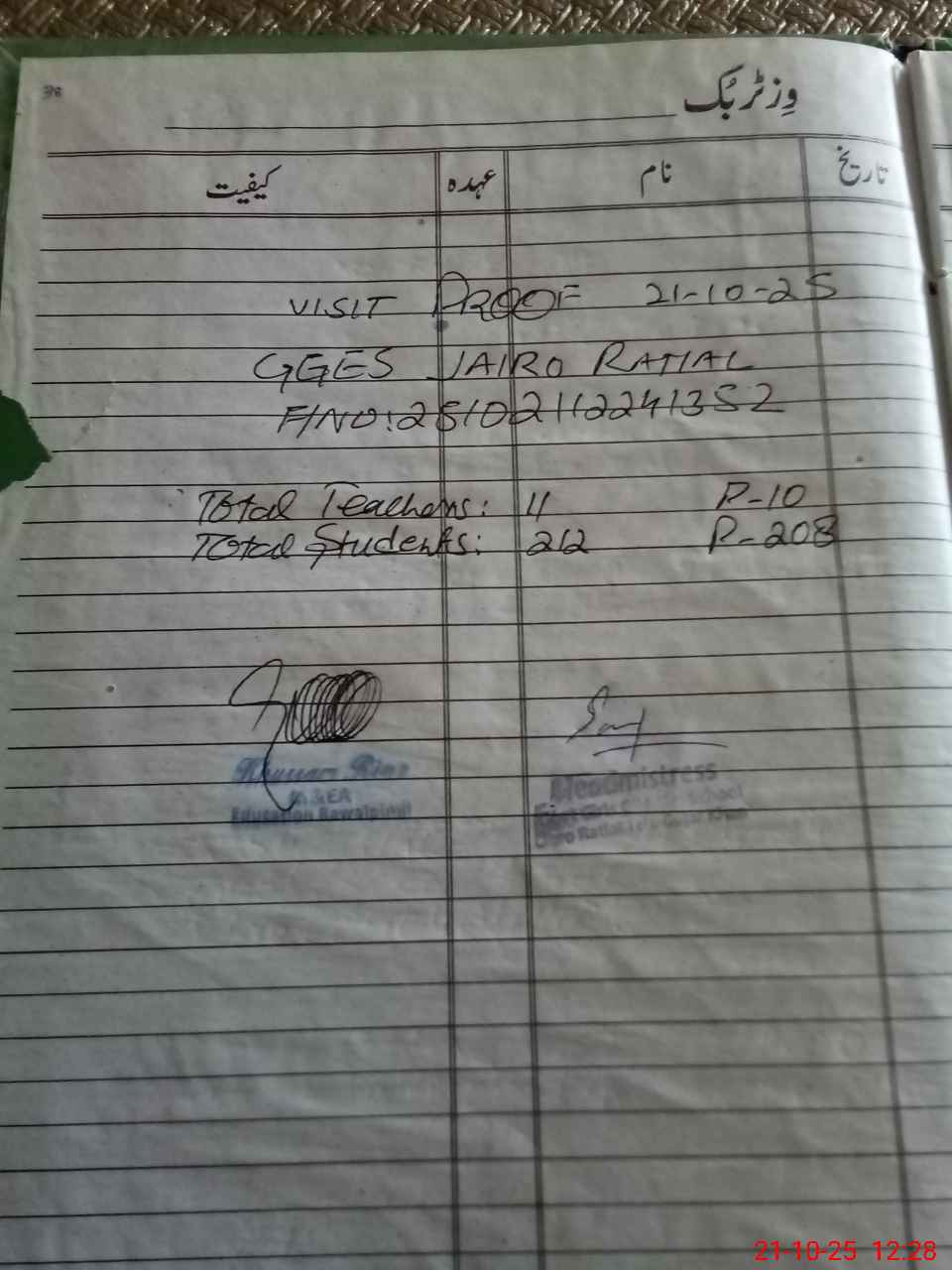 | Name: Si**** Qa**** Designation: (School Headmaster's/Headmistress's) Est Phone/Cell Number: 03**** |