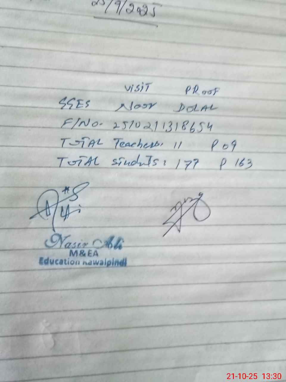 | Certified that this School was Inspected by the Undersigned MEA/DMO Today and the Information Stated Above is as Per Record. | |||||