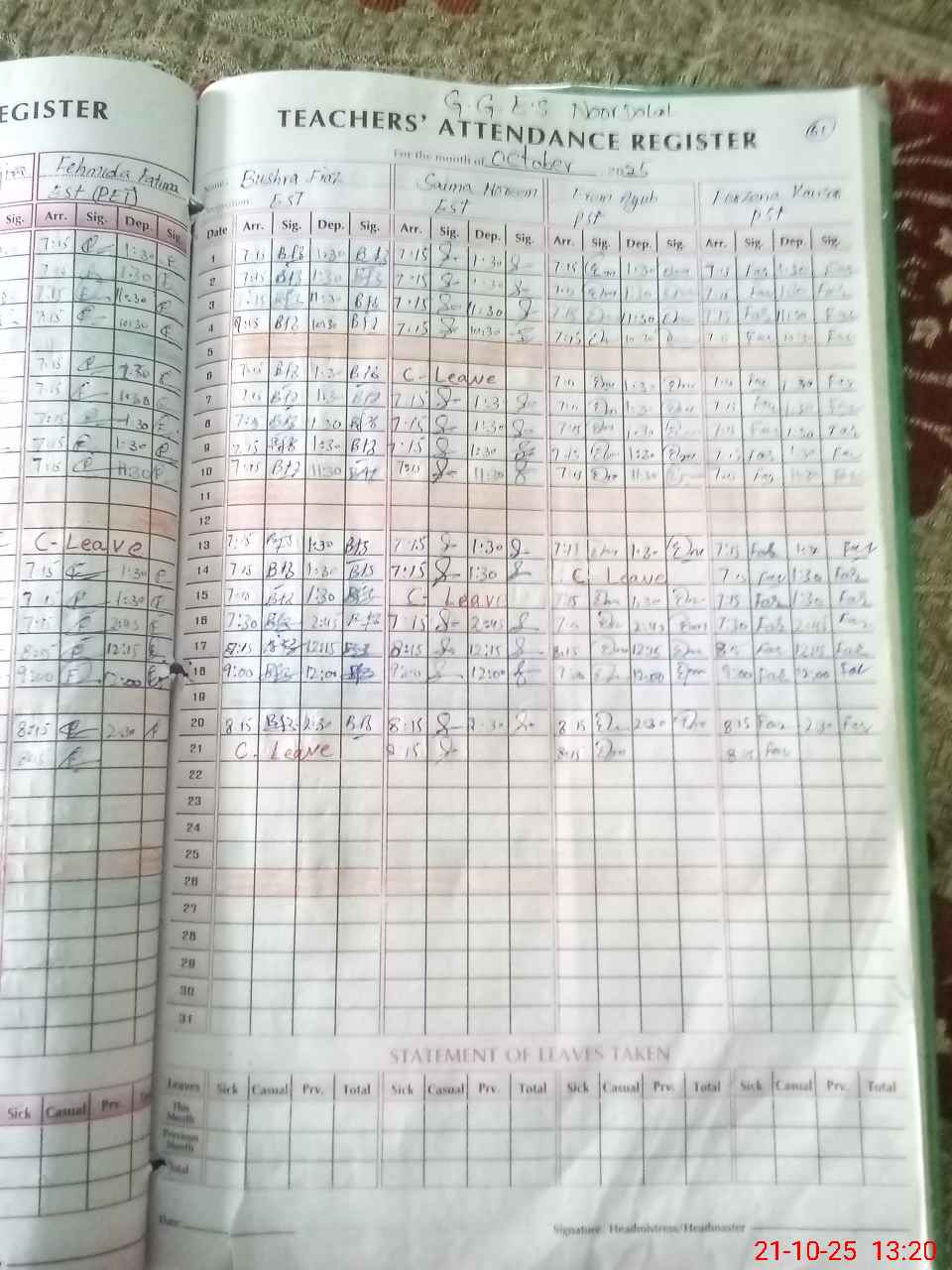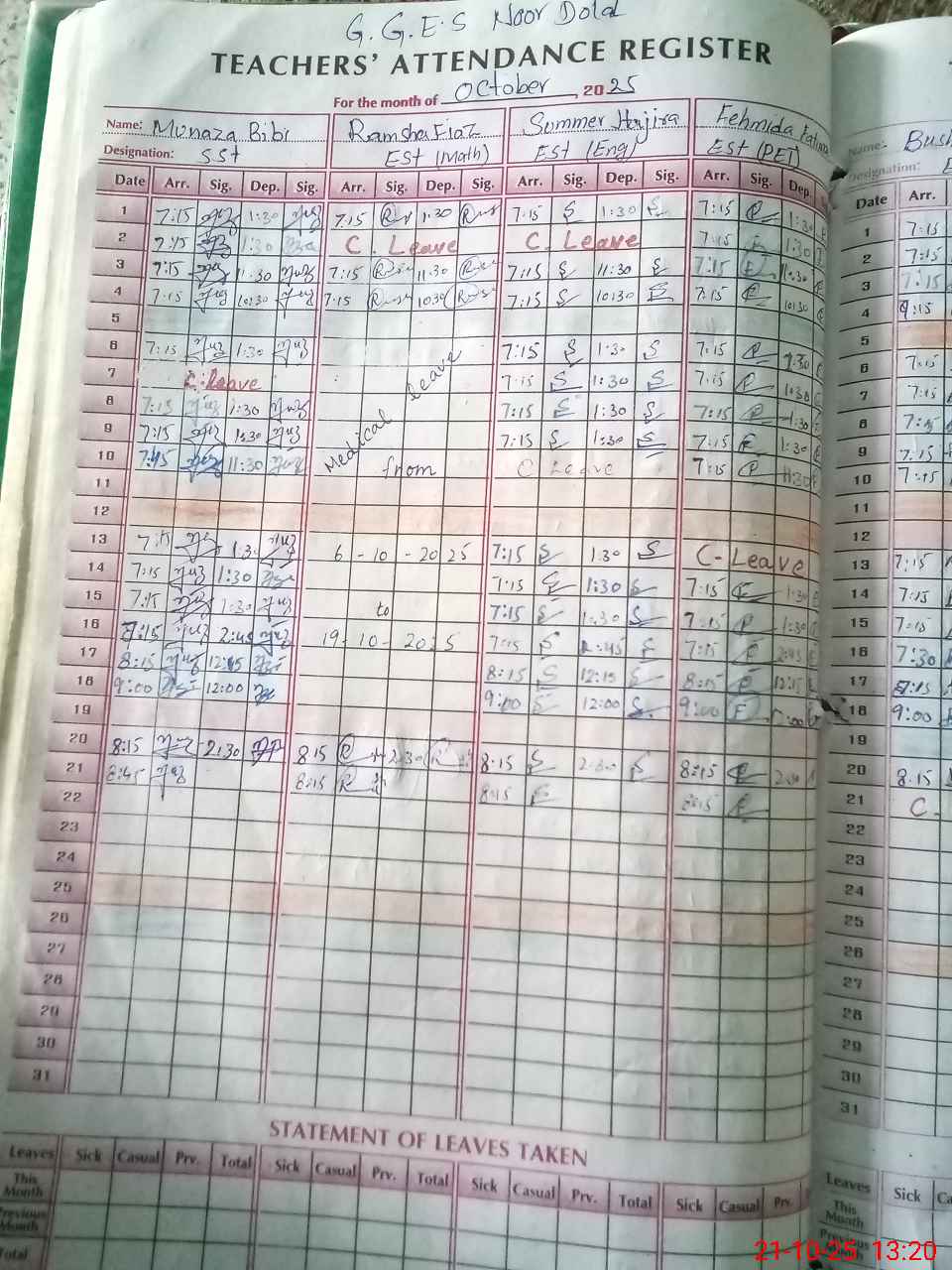 | Leave | Duty | Absent | Maternity | Medical | Ex- Pak |