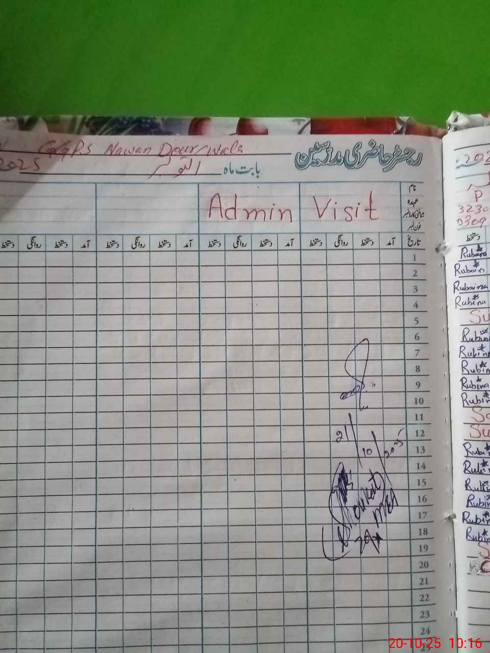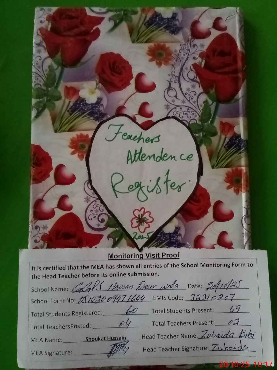 | Attendance Register | Head Teacher | MEA with School | Visit Proof |