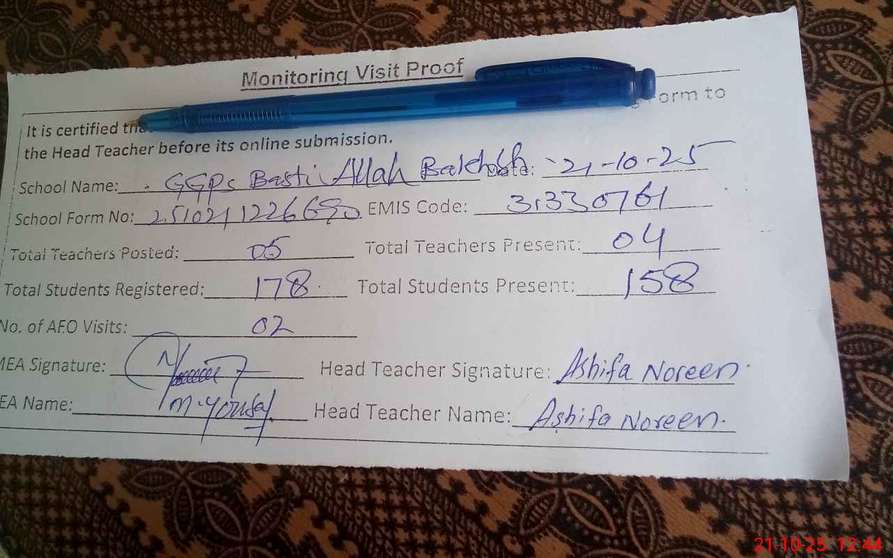 | EMIS Code: 31330761 | Name of School: GGPS BASTI ALLAH BAKSH | |||