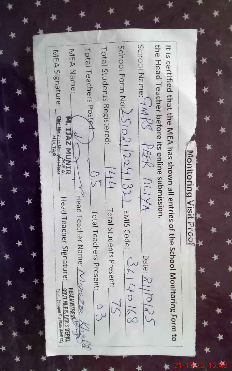 | EMIS Code: 36140168 | Name of School: GMPS PEER OLIYA (DEEPAL) | |||