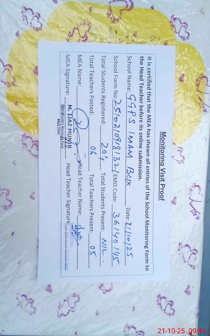 | EMIS Code: 36140145 | Name of School: GGPS BASTI IMAM BUX WALA | |||