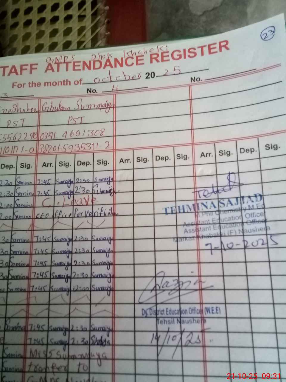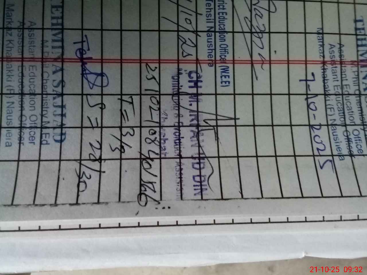 | Name: Bu**** Sh**** Designation: (School Headmaster's/Headmistress's) PST Phone/Cell Number: 03**** |