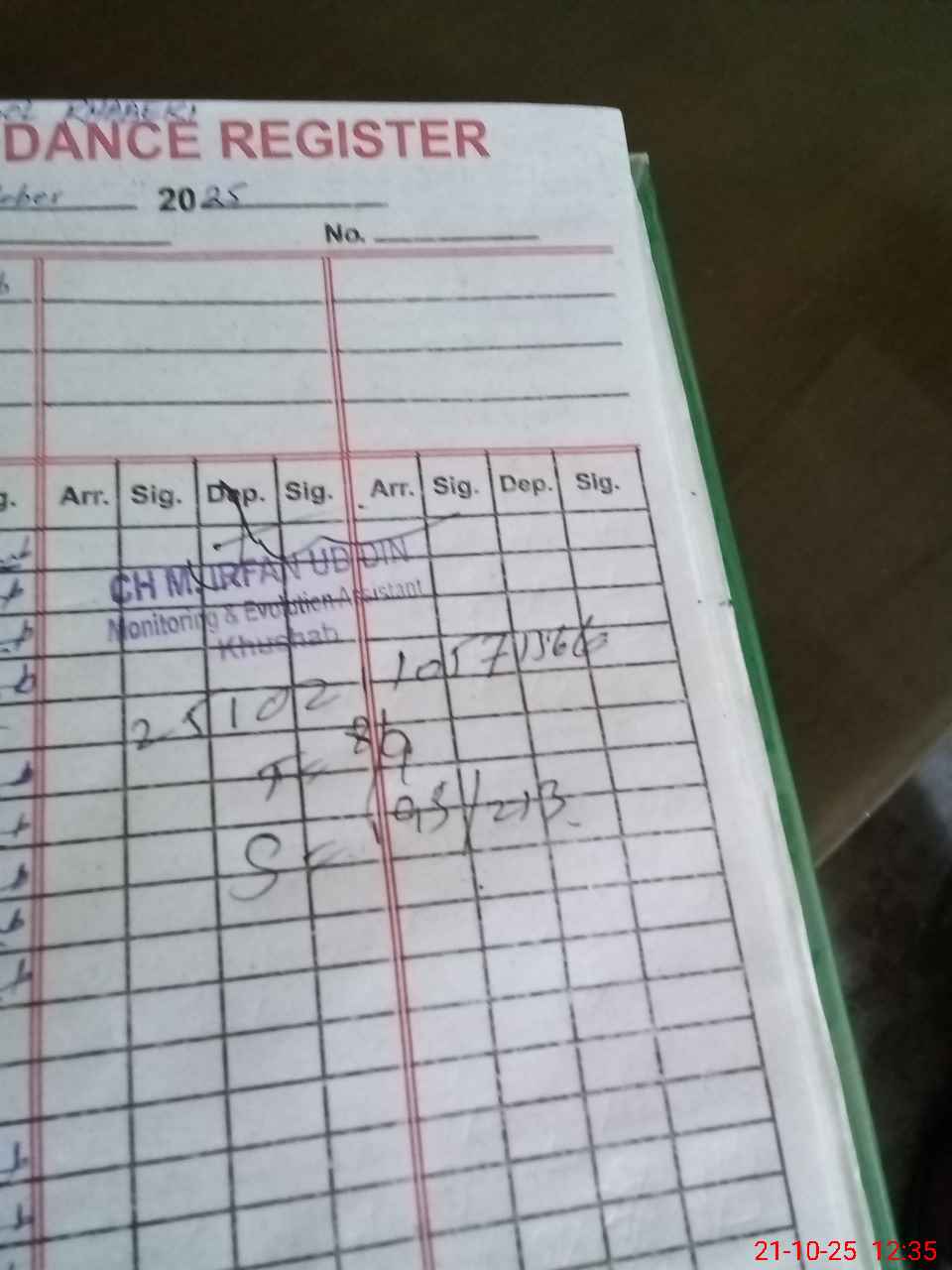 | Monitoring Date: 21-10-2025 | Start Time: 21-10-2025 10:57 AM | End Time: 21-10-2025 12:35 PM | Name of MEA: MU**** IR**** UDDI**** | |