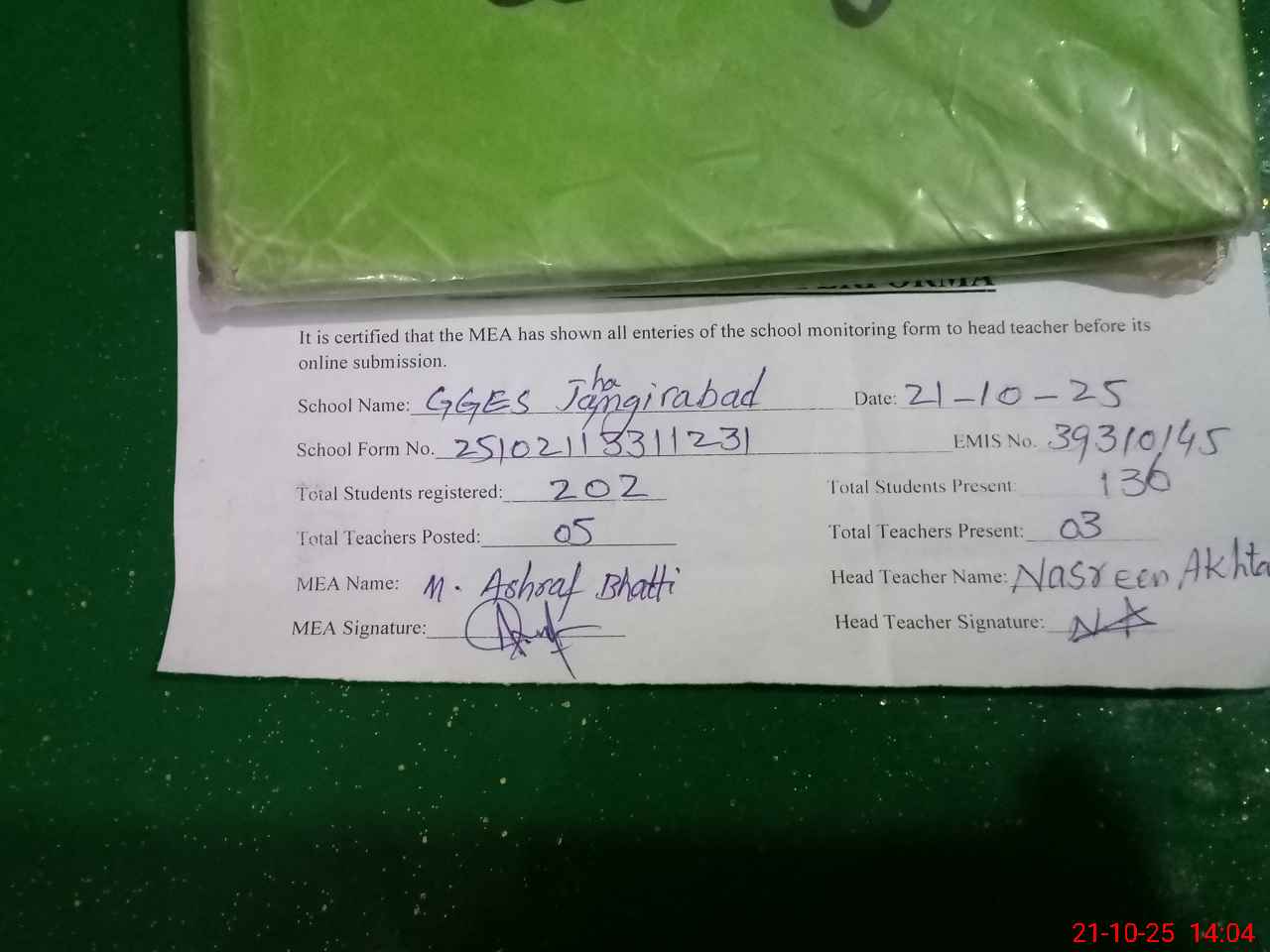 | Certified that this School was Inspected by the Undersigned MEA/DMO Today and the Information Stated Above is as Per Record. | |||||