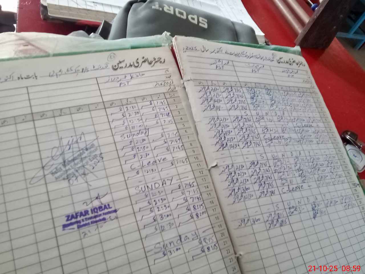 | CNIC | Full Name | Designation | R/C | Absence during last cal. month |