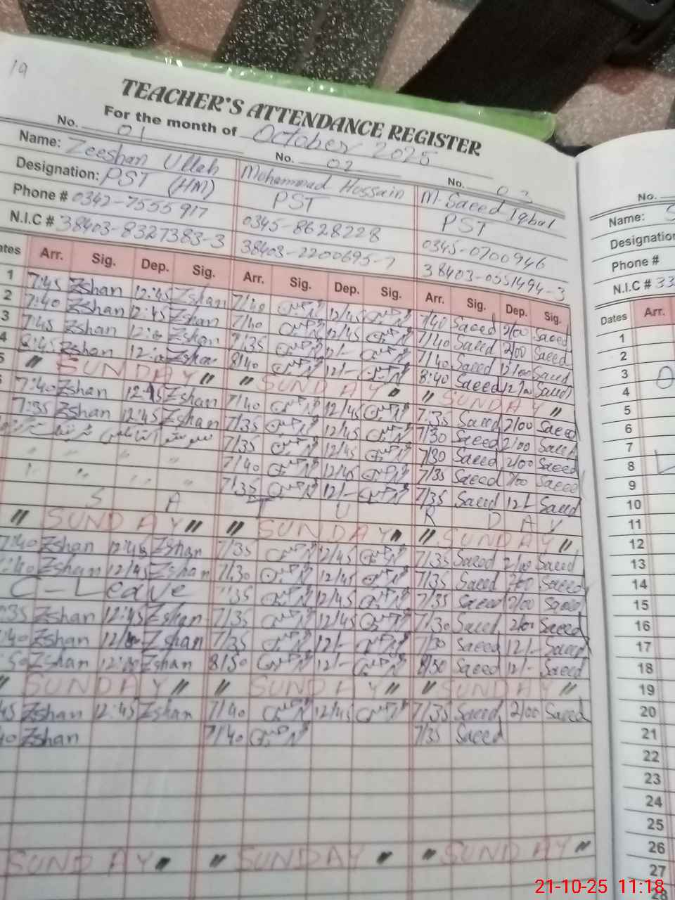 | Name: ZE**** UL**** Designation: (School Headmaster's/Headmistress's) PST Phone/Cell Number: 03**** |