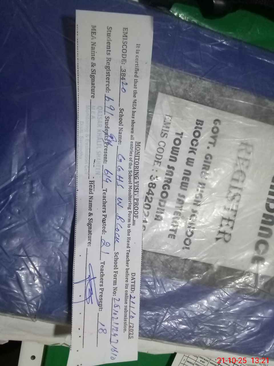| EMIS Code: 38420216 | Name of School: GGHS BLOCK-W NEW SATTELITE TOWN SARGODHA | |||
