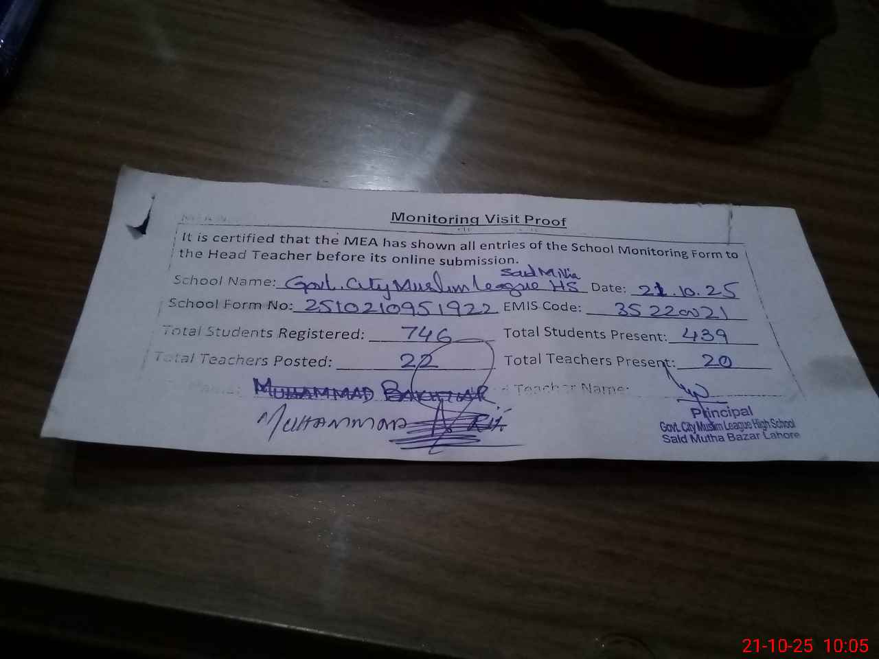 | EMIS Code: 35220021 | Name of School: GHS CITY MUSLIM LEAGUE SAID MITHA BAZAR | |||