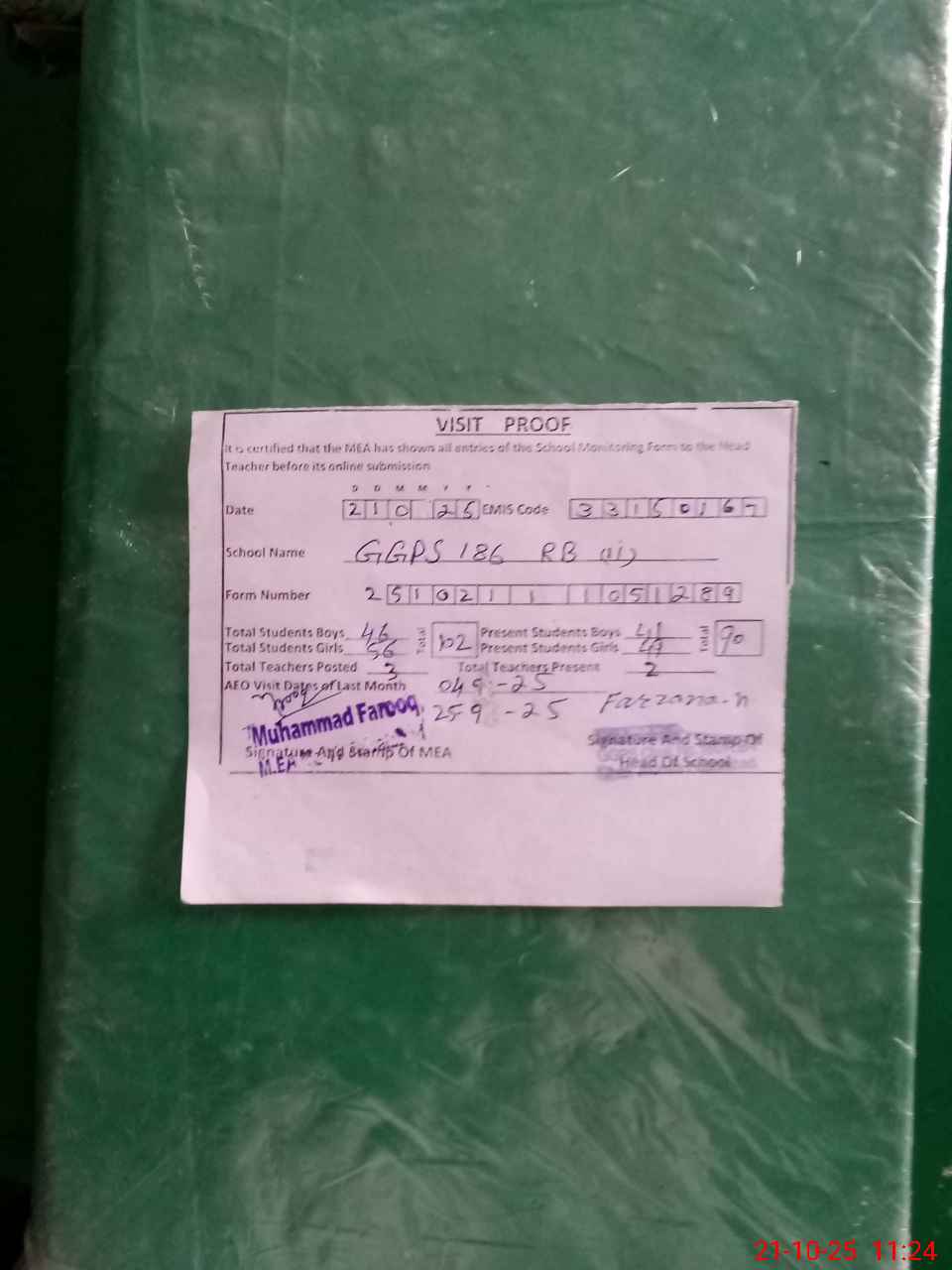 | Attendance Register | Head Teacher | MEA with School | Visit Proof |