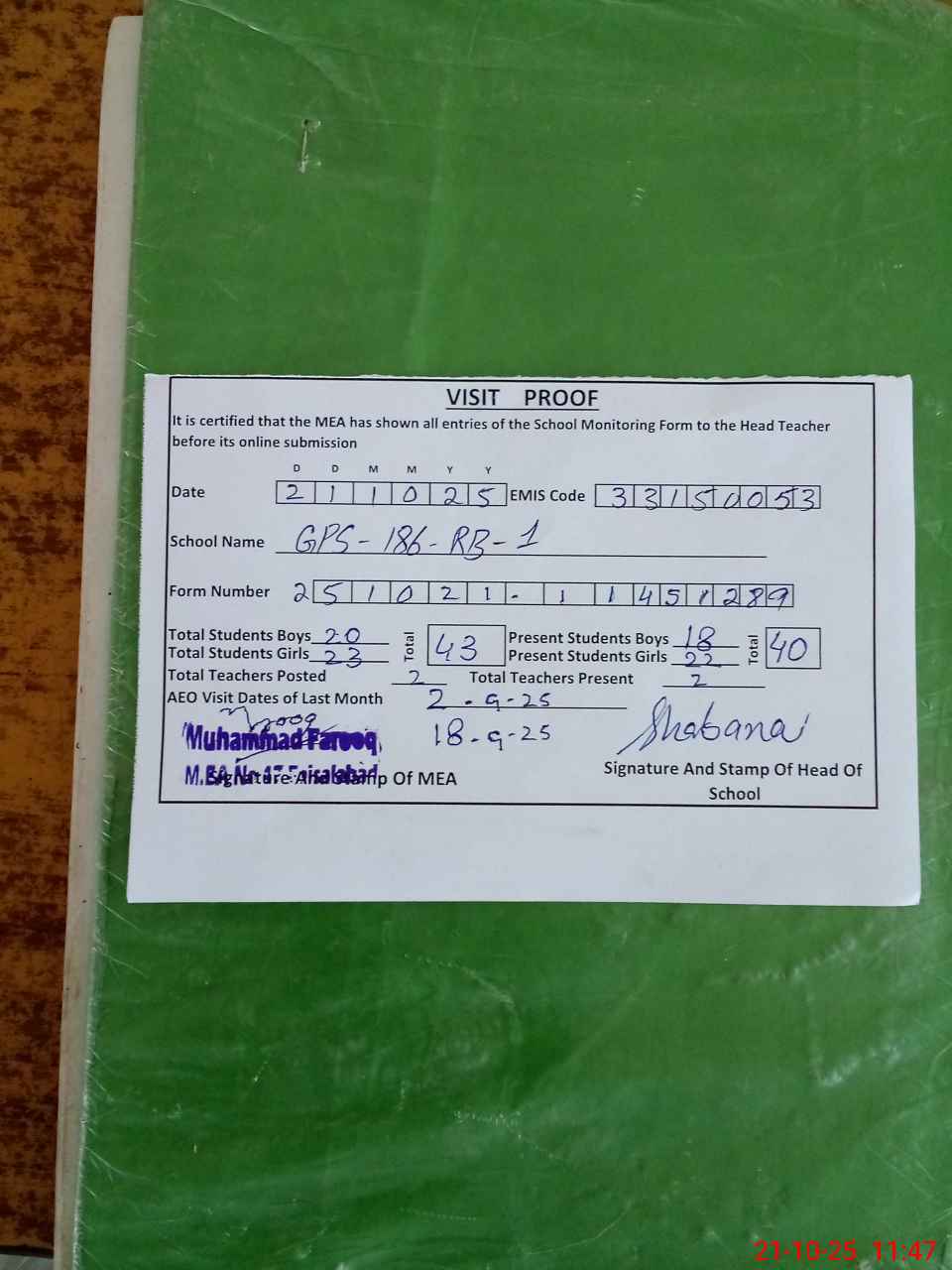 | EMIS Code: 33150053 | Name of School: GPS 186 RB I | |||