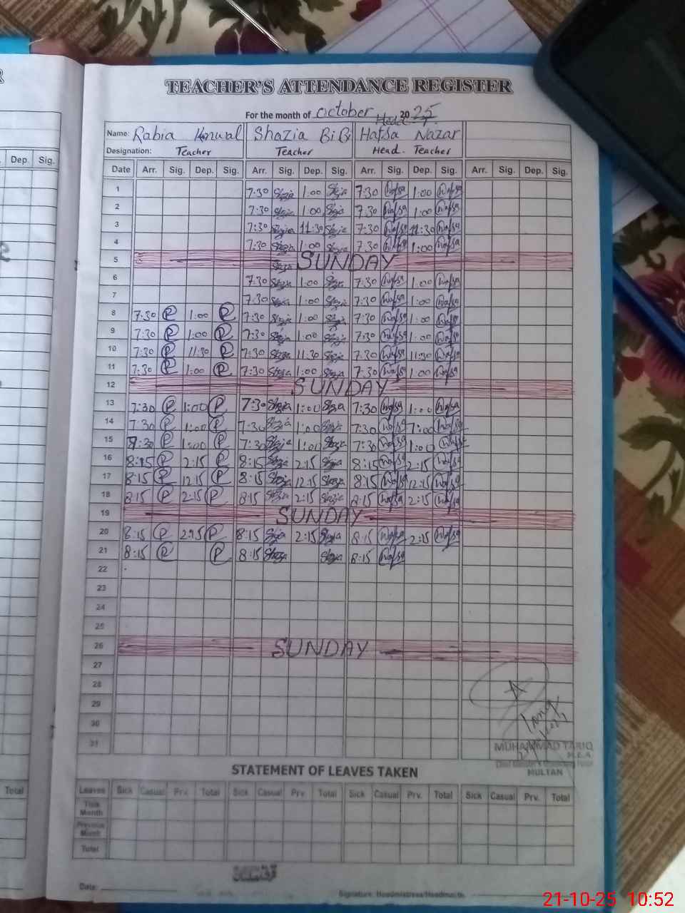 | Name: HA**** NA**** Designation: (School Headmaster's/Headmistress's) HEADMISTRESS Phone/Cell Number: 03**** |
