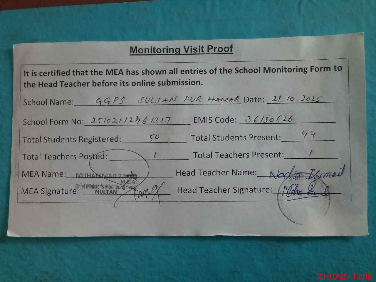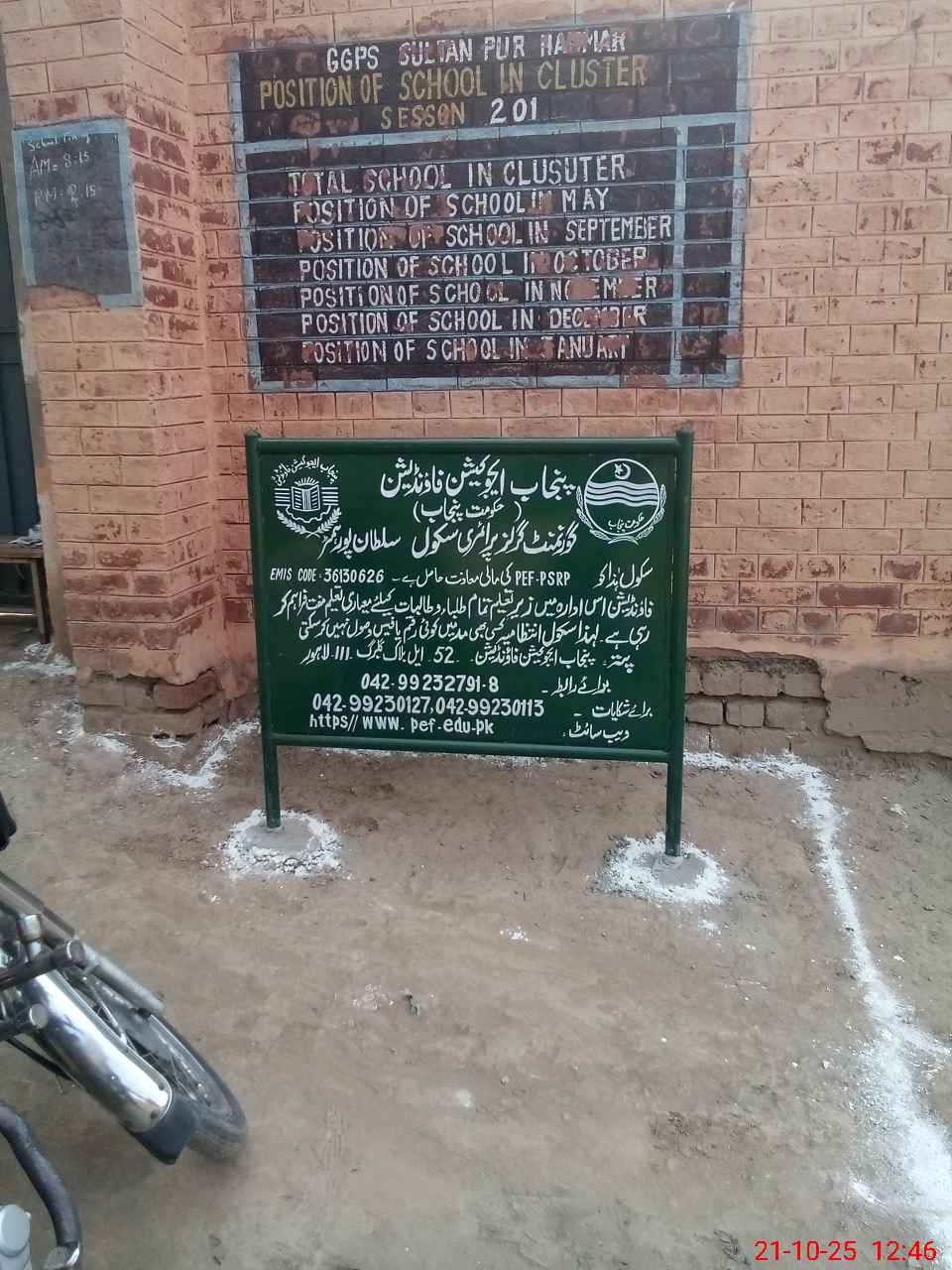 | EMIS Code: 36130626 | Name of School: GGPS SULTAN PUR HAMAR MULTAN | |||