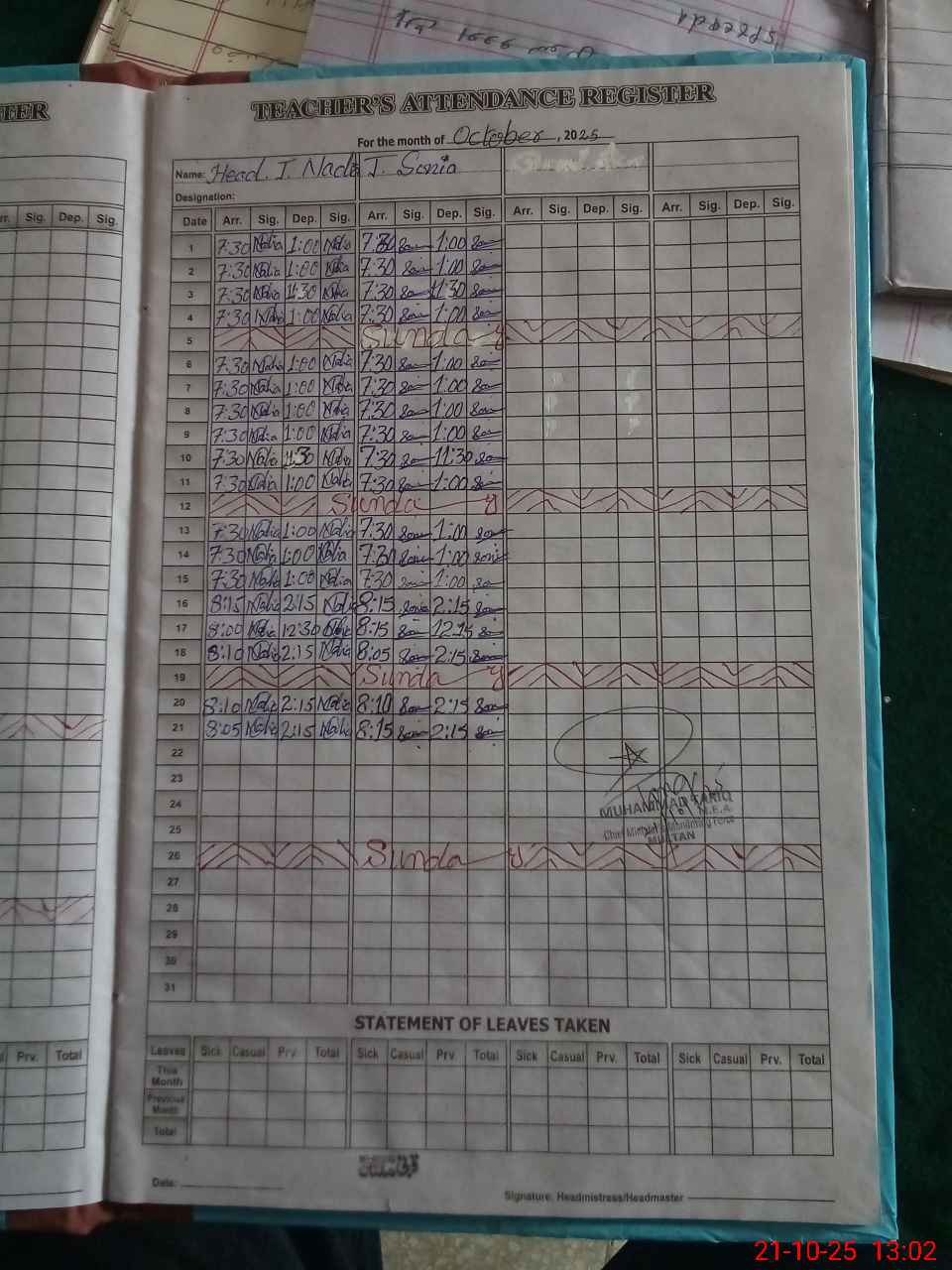| Name: NA**** IS**** Designation: (School Headmaster's/Headmistress's) HEADMISTRESS Phone/Cell Number: 03**** |