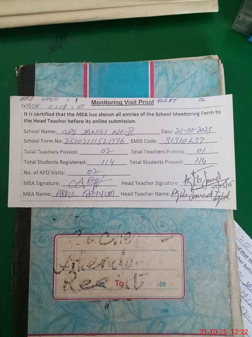 | EMIS Code: 31310637 | Name of School: GPS JANGI NO. 2 | |||