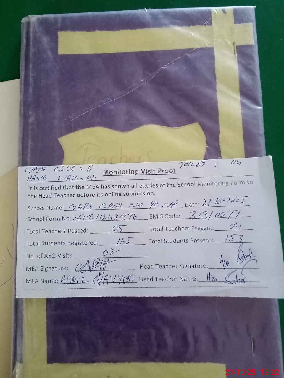 | EMIS Code: 31310077 | Name of School: GGPS CHAK NO. 90/NP | |||