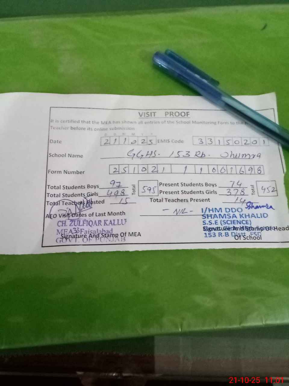 | EMIS Code: 33150201 | Name of School: GGHS CHAK NO 153 RB BHROKI | |||