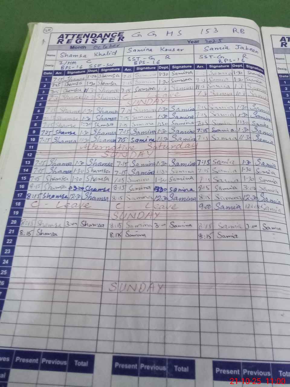 | 33**** | Bi**** | JC | 0 | 0 | 21 | 0 | 0 | 0 | 0 | 0 | 0 | Absent (Un-Authorized) | |