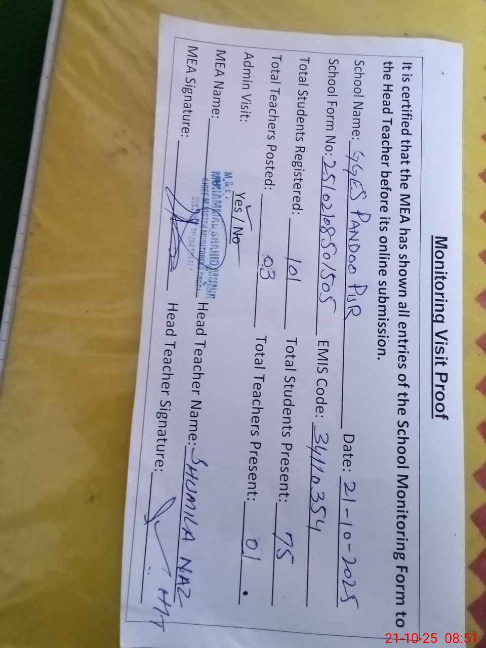 | EMIS Code: 34110354 | Name of School: GGES PANDOO PUR | |||