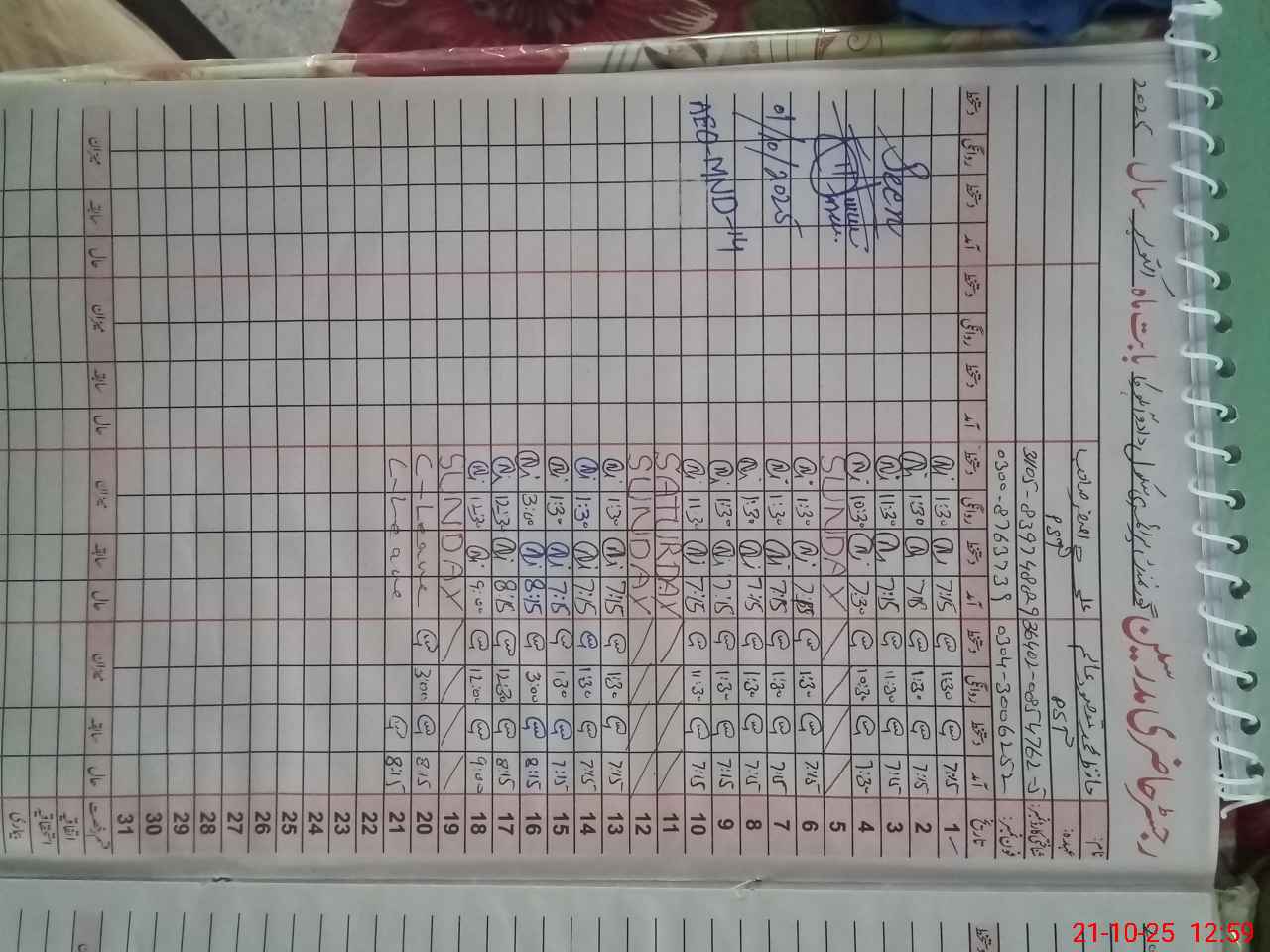 | CNIC | Full Name | Designation | R/C | Absence during last cal. month |