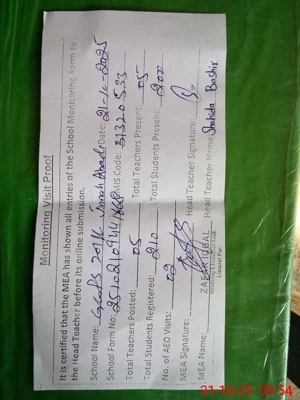 | Certified that this School was Inspected by the Undersigned MEA/DMO Today and the Information Stated Above is as Per Record. | |||||