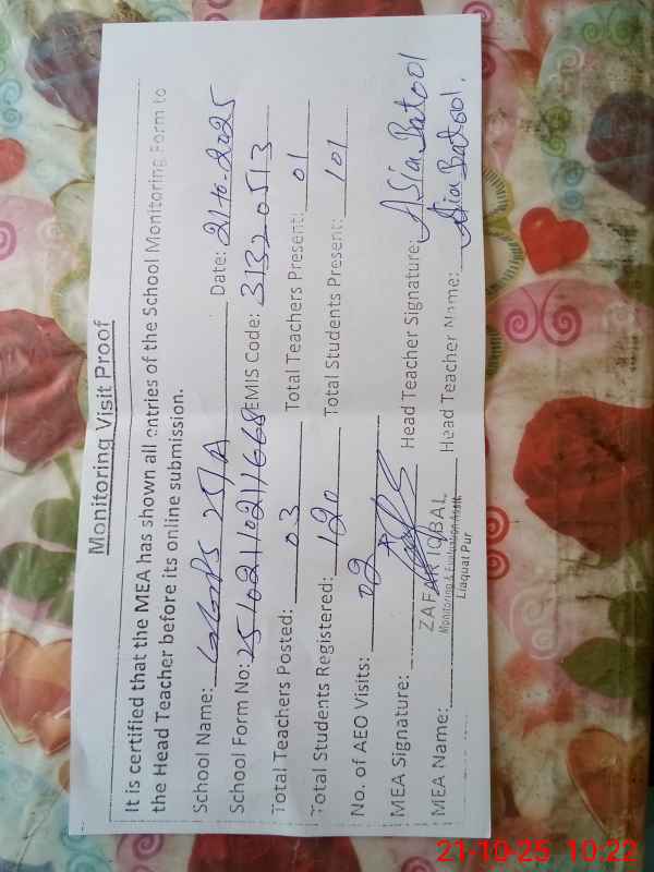 | Name: AS**** BA**** Designation: (School Headmaster's/Headmistress's) PST Phone/Cell Number: 03**** |