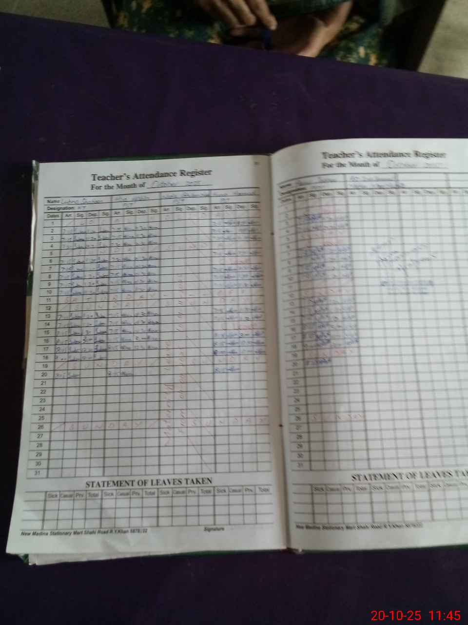 | Leave | Duty | Absent | Maternity | Medical | Ex- Pak |